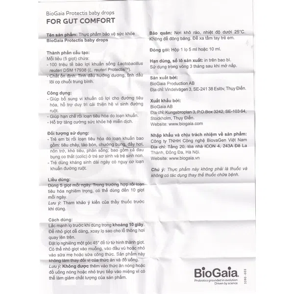 Men vi sinh BioGaia Protectis Baby Drops bổ sung vi khuẩn có lợi cho đường tiêu hóa, hỗ trợ duy trì và cải thiện hệ vi sinh đường ruột, giúp đường ruột khỏe mạnh, phòng ngừa nhiễm khuẩn ruột và các triệu chứng rối loạn tiêu hóa. Sản phẩm với thành phần 100% tự nhiên, là Probiotic duy nhất trên thế giới có nguồn gốc từ sữa mẹ. Được chứng nhận an toàn cho cả phụ nữ mang thai và trẻ sơ sinh. Sản phẩm sản xuất tại Thụy Điển.