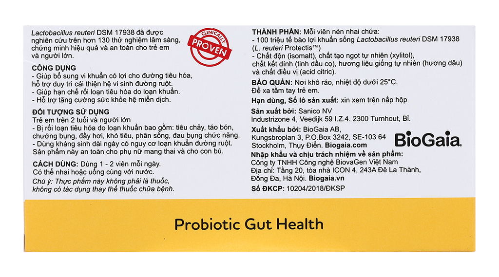 Men vi sinh BioGaia viên bổ sung vi khuẩn có lợi cho đường tiêu hóa, hỗ trợ duy trì cải thiện hệ vi sinh đường ruột.