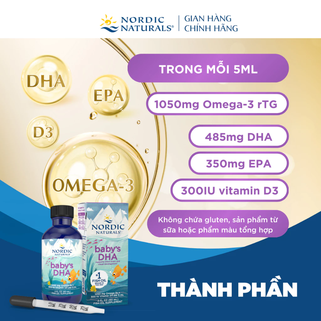 Baby's DHA là nguồn cung cấp omega-3 DHA đáng tin cậy – một chất béo thiết yếu mà trẻ sơ sinh cần để phát triển khỏe mạnh não bộ, mắt và hệ thần kinh.