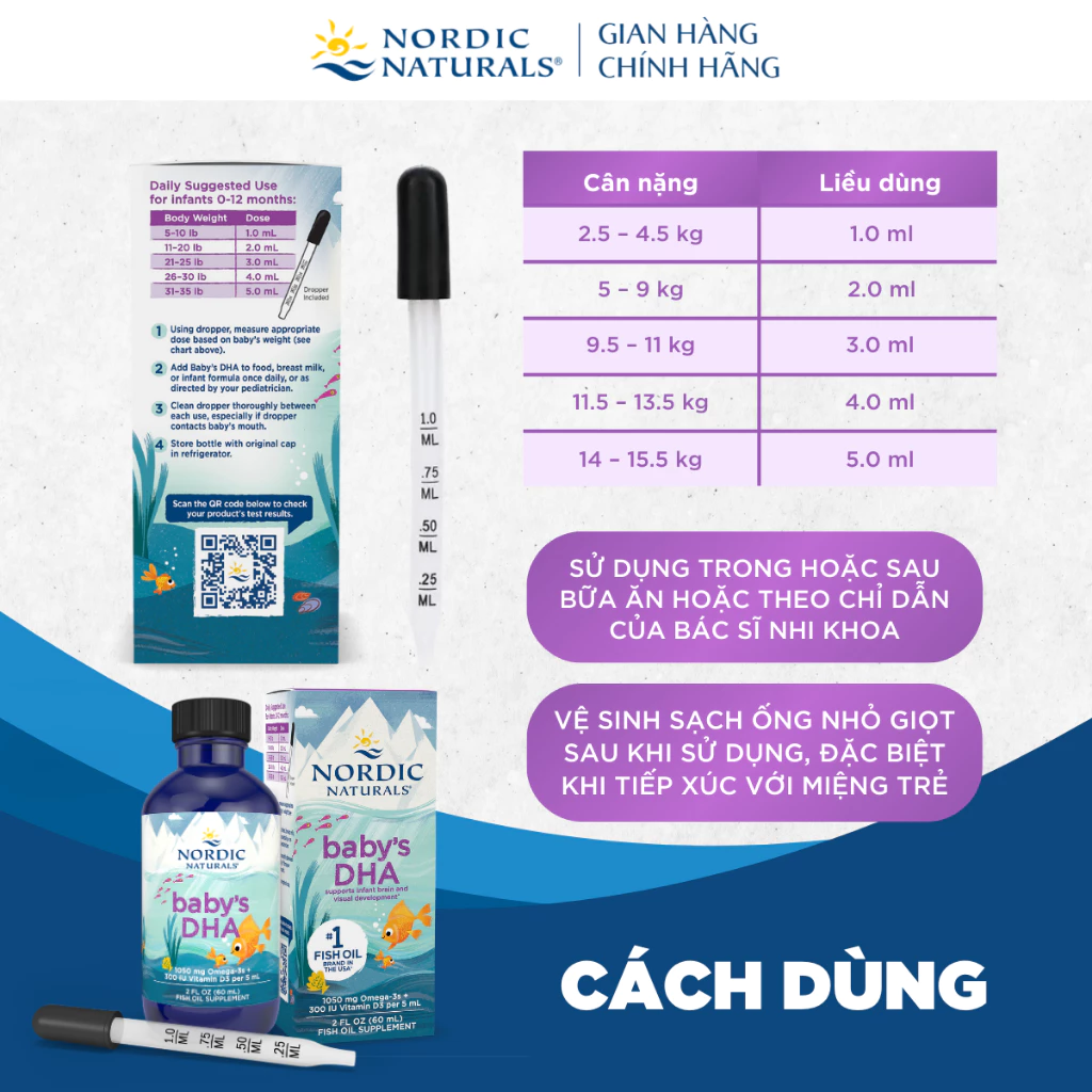 - Sản xuất từ 100% cá tuyết Bắc Cực hoang dã, được nhiều bác sĩ nhi khoa khuyến nghị