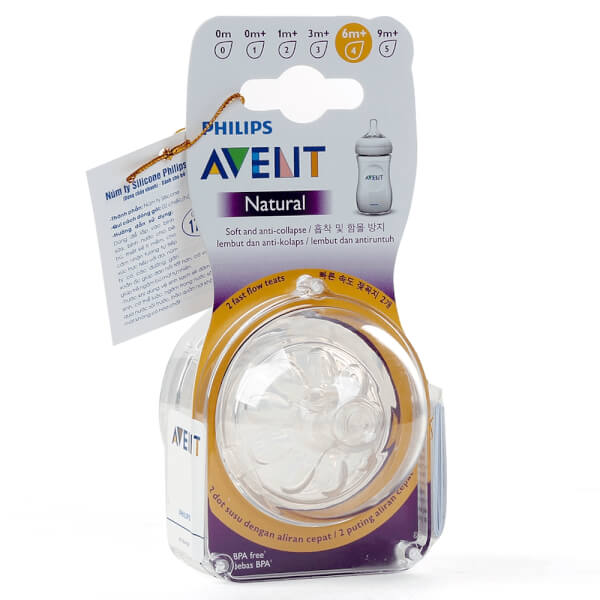 Tên sản phẩm: Vỉ 2 núm ty silicone Philips Avent mô phỏng tự nhiên (SCF654/23, 6M+)