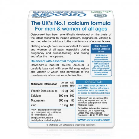 Osteocare Vitabiotics bổ sung canxi, magie, vitamin D, kẽm giúp xương chắc khỏe.