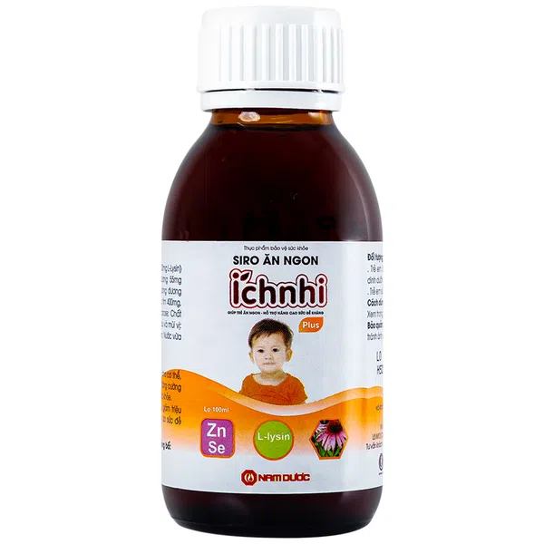 Siro Ăn Ngon Ích Nhi Plus Nam Dược giúp bổ sung Kẽm, Selen và Lysin cho cơ thể, giúp trẻ ăn ngon, giảm biếng ăn, tăng cường hấp thu dưỡng chất, tăng cường sức khỏe.