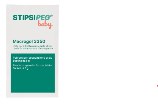 STIPSIPEG Baby là thiết bị y tế, thành phần chính là Macrogol 3350 (PEG 3350), có tác dụng điều trị tình trạng táo bón ở trẻ em.