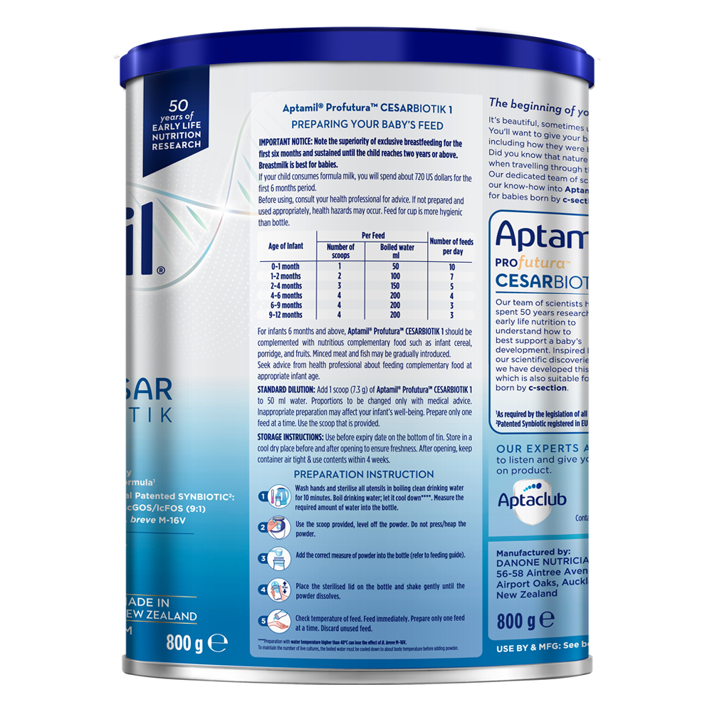 Aptamil Profutura CESARBIOTIK 1 (bao bì mới của Aptamil New Zealand số 1) là sản phẩm dinh dưỡng dành riêng cho bé từ 0 đến 12 tháng tuổi. Được nhập khẩu chính hãng từ New Zealand, Aptamil Profutura CESARBIOTIK 1 là sự lựa chọn tốt ba mẹ dành cho bé. Mời ba mẹ tham khảo thông tin chi tiết về sữa Aptamil Profutura CESARBIOTIK 1 dưới đây.