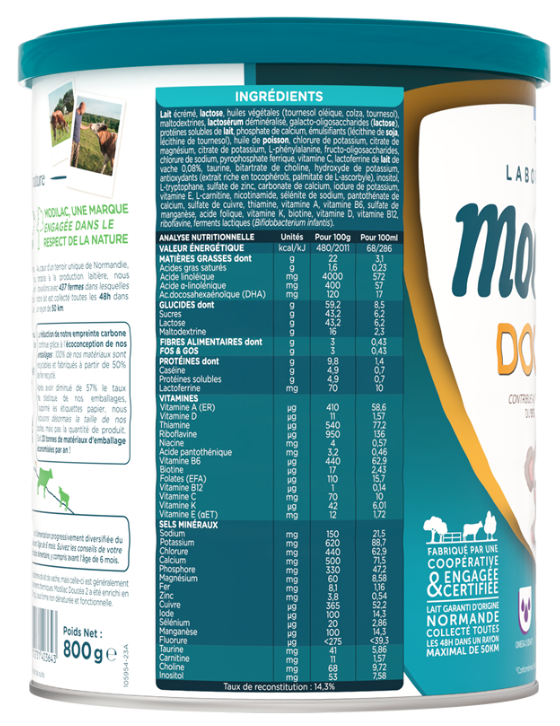 Bổ sung hàm lượng Lactoferrin cao, cùng lợi khuẩn Bifidobacterium và tăng chất lượng Protein khiến Modilac Doucéa trở thành sản phẩm được hàng triệu mẹ tại nhiều nước trên toàn cầu lựa chọn. Modilac Doucéa là sản phẩm của tập đoàn Savencia, tập đoàn top 5 toàn cầu về sản xuất bơ sữa.