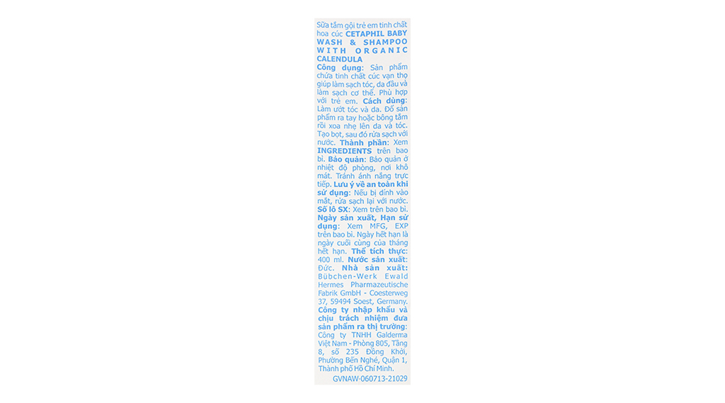 Sữa tắm gội Cetaphil Baby Calendula 400ml