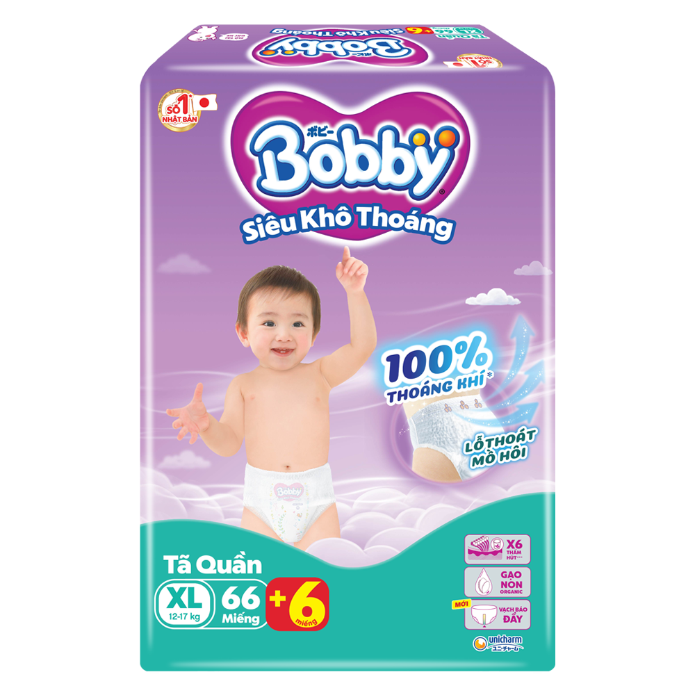 Bỉm - Tã quần Bobby size XL đến từ thương hiệu Bobby - là thành viên Tập đoàn Unicharm (nhà sản xuất tã lót em bé số 1 Nhật Bản), đồng thời là nhãn hiệu tã giấy số 1 Việt Nam - tự hào được lựa chọn và đồng hành cùng hàng triệu em bé từ những ngày đầu tiên chào đời. Nay, ứng dụng công nghệ tiên tiến từ Unicharm, Bobby cam kết sẽ nỗ lực không ngừng để đem đến sự thoải mái tối đa cho bé yêu - như vòng tay âu yếm của bố mẹ.