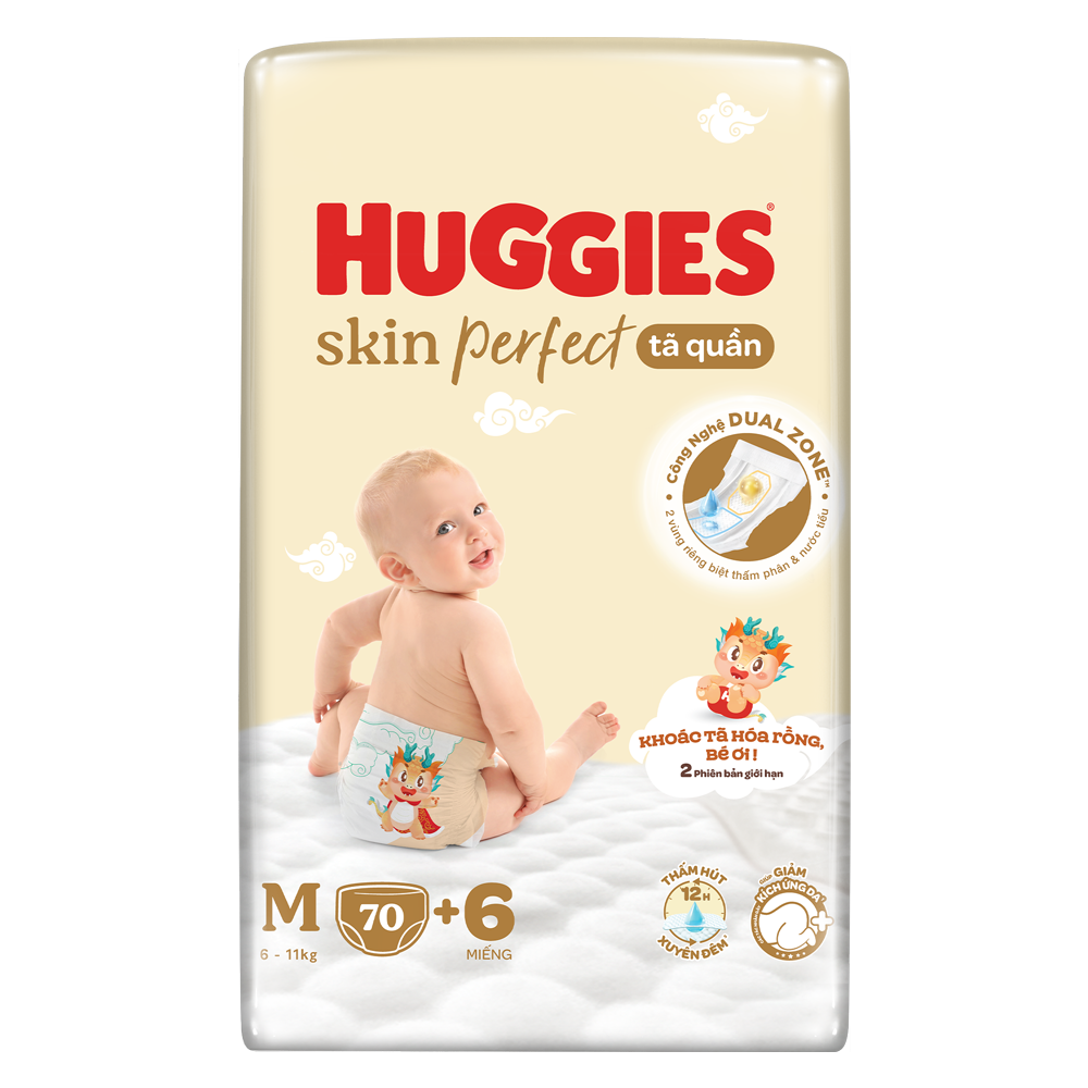 Tã Huggies Skin Perfect có thiết kế lõi mỏng nhẹ và thoáng mát gấp 3 lần mang đến cho bé cảm giác thoải mái, giảm nhiệt độ bên trong, không bị hầm bí vùng mặc bỉm.