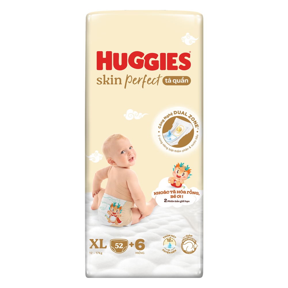 Tã quần Huggies Skin Perfect size XXL 48 + 6 miếng có khả năng thấm hút lên đến 12 giờ nhờ thiết kế dung tích lớn, khả năng thấm hút tốt cho bé cảm giác khô thoáng cả ngày.